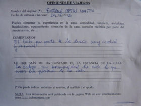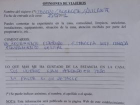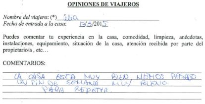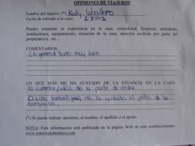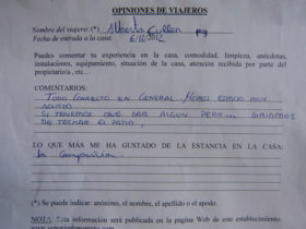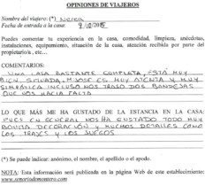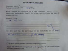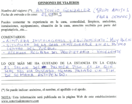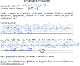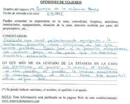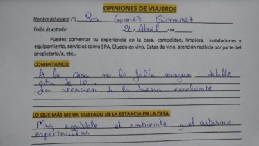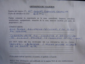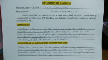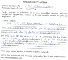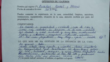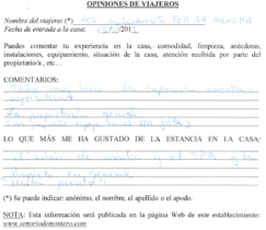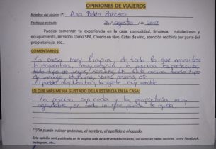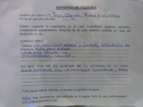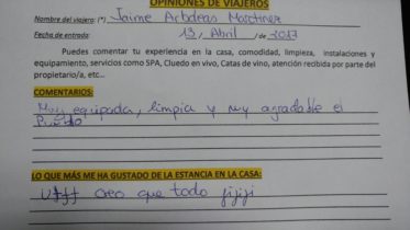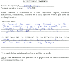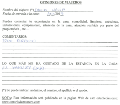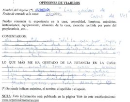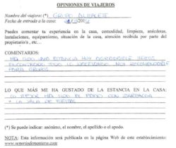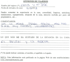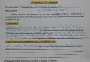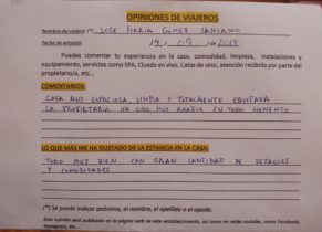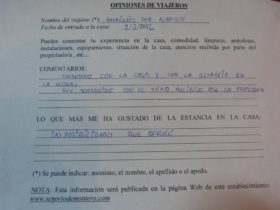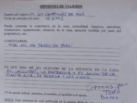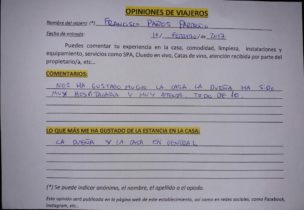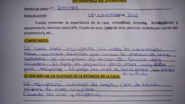 En la siguiente galería de imágenes puede ver varias opiniones que nuestros clientes dejan en nuestra Casa Rural después de su estancia en la misma.